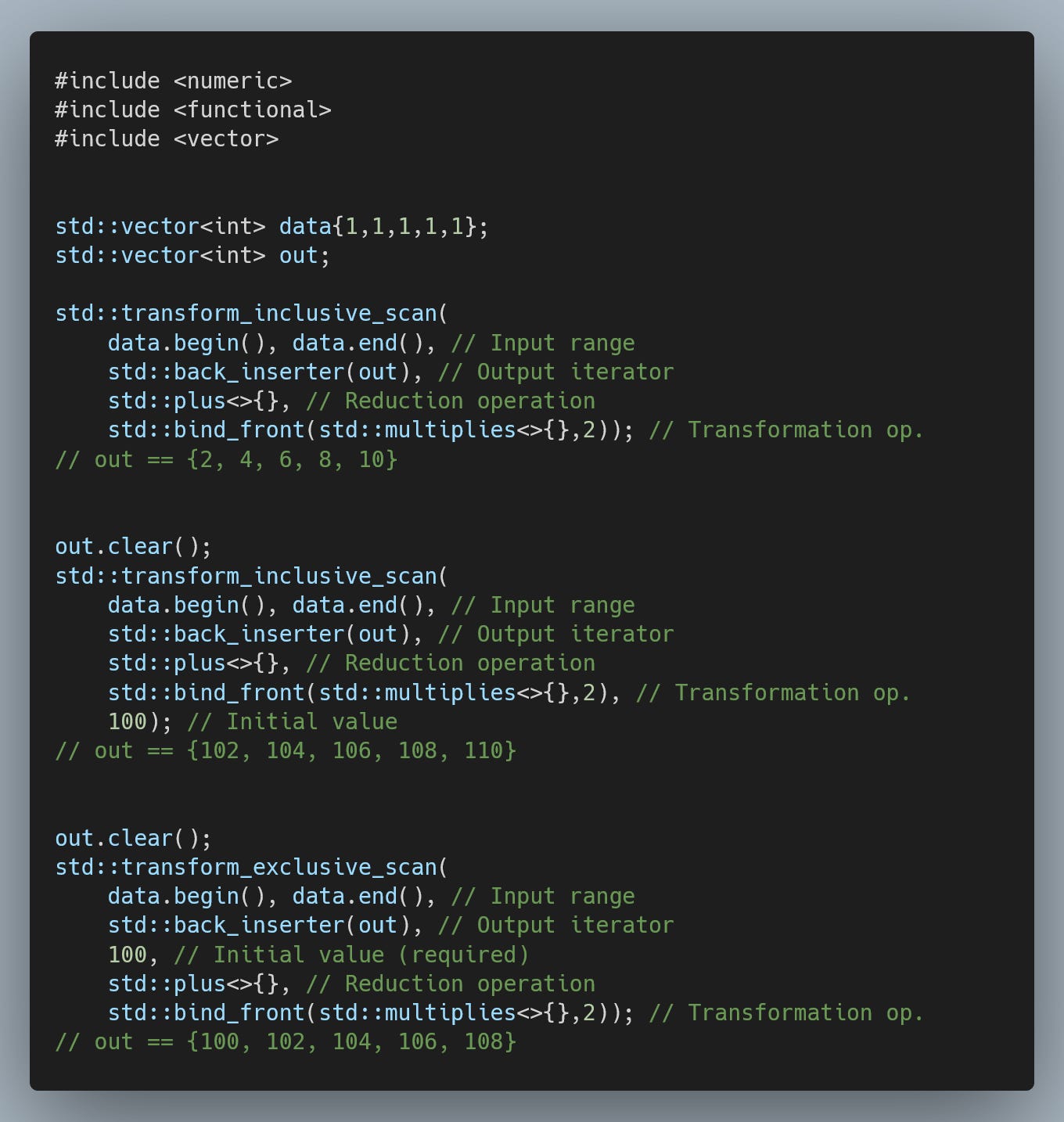 Daily bit(e) of C++ | std::transform_inclusive_scan, std::transform_exclusive_scan